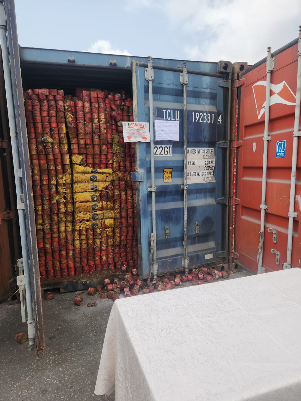 The Service also uncovered multiple containers loaded with expired food items, including muffin cookies, 36,000 cans of expired energy drinks and large quantities of expired tomato paste.